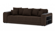 Механизм трансформации - еврокнижка. Наполнение: ПБ + высокоэластичный ППУ. Полка ЛДСП только в одном подлокотнике. Ящик для белья - есть. Чехлы подушек - несъемные, наполнение - крошка ППУ.