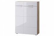 Стильный и современный комод с глянцевым фасадом из модульной прихожей «Лайн». Изделие собирается на любую сторону. Конструкция установлена на пластиковые опоры высотой 20 мм. Выдвижные ящики на шариковых направляющих полного выдвижения