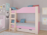 Кровать двухъярусная "Астра 2" с ящиком, дуб молочный/розовый