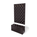 Прихожая «Мишель 950» создаст неповторимый интерьер в прихожей комнате. Обивка -качественный велюр. Вешалка снабжена четырьмя рожковыми крючками для одежды. В основе конструкции плита МДФ толщиной 10 мм., наполнитель ППУ. Пуф с мягким сиденьем и ящиком для хранения. Каркас из ЛДСП толщиной 16 мм., наполнитель ППУ.