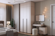 Трюмо изготовлено из качественных материалов: корпус выполнен из ЛДСП, что гарантирует прочность и долговечность, а фасад из МДФ в плёнке ПВХ не только выглядит эстетично, но и защищает трюмо от повреждений. Особое внимание заслуживает фрезеровка фасадов, которая придаёт изделию изысканный вид. Металлические ручки и выкатные ящики на шариковых направляющих обеспечивают удобный доступ к вещам. Нерегулируемые пластиковые опоры гарантируют стабильность конструкции. Благодаря своему дизайну трюмо «Катрин» легко впишется в любой интерьер и гармонично сочетается с другими модулями спальни «Катрин». Выкатные ящики предоставляют достаточно места для хранения различных предметов, а возможность использования трюмо в качестве письменного стола делает его универсальным элементом мебели.